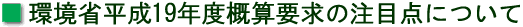 | 環境省の平成19年度概算要求の概要が去る8月29日に明らかになりました。 その内容については、環境省HPにあります《平成19年度環境省重点施策》で紹介されていますが、あわせて、大臣官房廃棄物・リサイクル対策部が作成した「平成19年度廃棄物・リサイクル対策関係予算概算要求の概要―〈もったいない〉の心を踏まえた3Rの推進と不法投棄対策―」 (PDF形式:299KB)、廃棄物対策課が作成した「平成19年度一般廃棄物関係予算(案)の概要」(PDF形式:1024KB)が参考になります。 そのうち当工業会メンバーにとりまして、大いに実現が期待される注目点として、いくつか、触れてみたいと思います。なお、本文は環境省ご当局のチェックは受けておりませんので、内容についての一切の責任は日本環境衛生施設工業会(事務局)にあります。 |