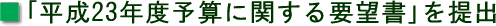 平成22年8月25日、山田常任理事他6名で民主党 田名部匡代副幹事長に対し、国会内の議員第15控室において「平成23年度予算に関する要望書(民主党 枝野幸男幹事長宛)」を提出した。その後、環境省を訪問し、小沢鋭仁環境大臣をはじめ幹部の方に対して、23年度予算要望等を行った。