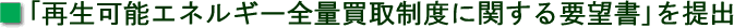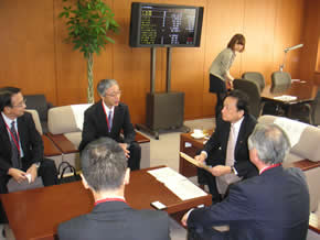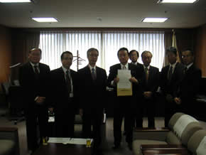 「再生可能エネルギー全量買取制度に関する要望書」を提出 平成22年10月7日、山田常任理事他6名で経済産業大臣政務官 中山 義活氏に大臣政務官室において「再生可能エネルギー全量買取制度に関する要望書」を提出した。 (なお、あわせて、大畠章宏経済産業大臣宛の要望書も提出。) 以下は要望の模様。 |
