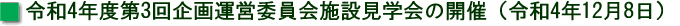 令和4年度第3回企画運営委員会施設見学会が12月8日(木)に開催された。 見学施設は、鹿児島市にある新南部清掃工場で、15名の参加があった。 鹿児島市新南部清掃工場の概要 ごみ焼却施設処理能力 日量220トン(日量110トン×2炉)、ストーカ式(並行流式焼却炉) バイオガス施設処理能力 日量60トン(日量30トン×2基) 処理対象物 もやせるごみ、し尿処理施設からの脱水汚泥等 焼却余熱利用 ごみ発電(高効率発電、4710kW) バイオガス利用 都市ガス事業者にガスの原料として供給 https://www.city.kagoshima.lg.jp/kankyo/seiso/nanbuseiso/kensetsukoujisinchoku.html