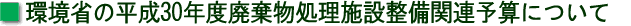 http://www.env.go.jp/guide/budget/index.html)の「平成29年度補正予算(案)の概要」、「平成30年度環境省重点」及び「平成30年度環境省予算(案)事項別表」でご覧いただけます。 |